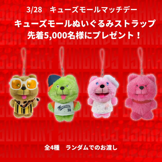 来場者プレゼント『キューズモールぬいぐるみストラップ』3/28のみ先着5,000名さまにプレゼント!