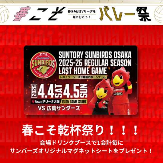 イベント『春こそ乾杯祭り!!!』会場ドリンクブースで1会計毎にサンバーズオリジナルマグネットシートをプレゼント!※数量限定